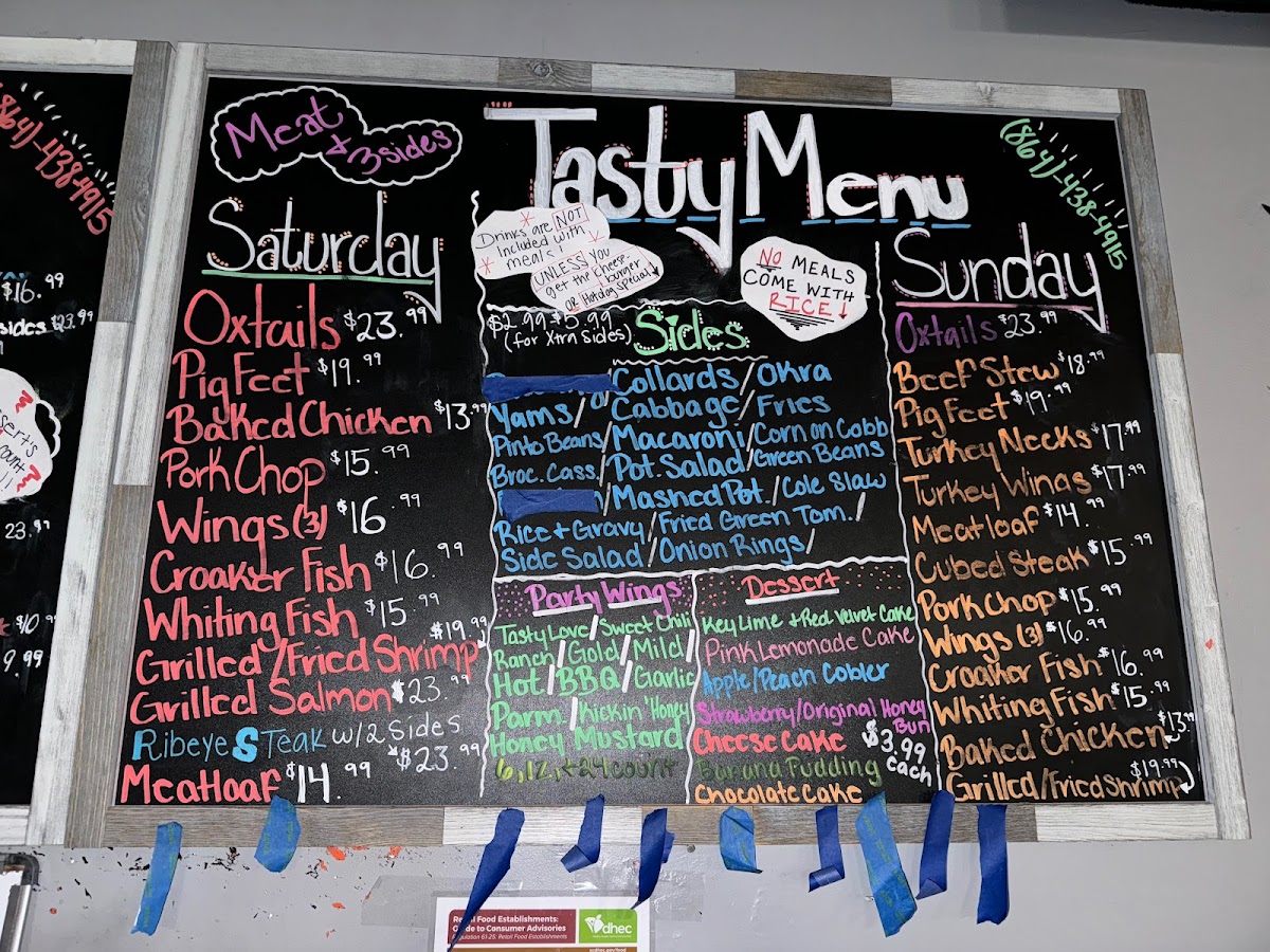 Introducing the menu of Tasty Soul Food & Bar, a culinary gem located at 3214 Augusta St, Greenville, SC. This vibrant spot celebrates the essence of traditional soul food, serving hearty meals that warm the heart and soul. The standout "Meat and Three" selections include succulent baked chicken, juicy pork chops, and flavorful wings, all accompanied by delightful sides like mac and cheese, collard greens, and cornbread, all for just $9.99.